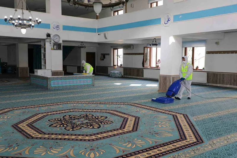 Talas Belediyesi tarafından ilçe genelindeki camilerde düzenli olarak gerçekleştirilen temizlik ve dezenfeksiyon çalışmaları, yaklaşan on bir ayın sultanı Ramazan’a özel olarak daha kapsamlı şekilde sürdürülüyor.