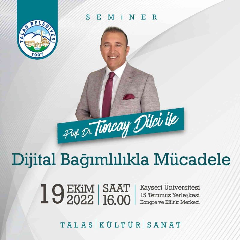 Talas Belediyesi tarafından düzenlenen programla; ’Dijital Bağımlılıkla Mücadele’ konulu seminer gerçekleştirilecek.
