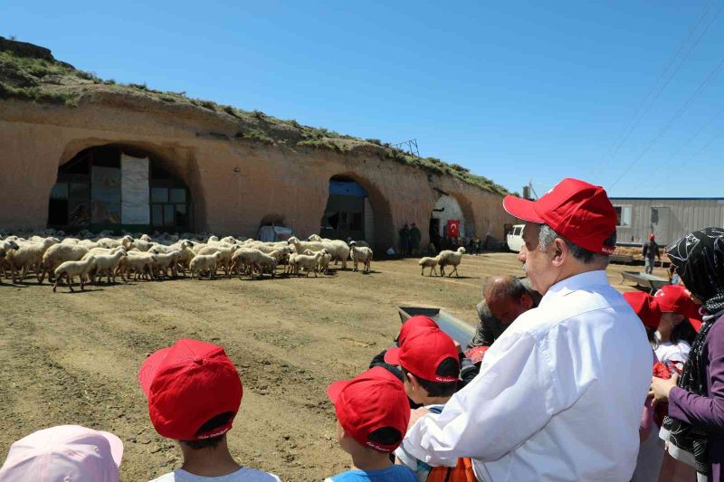 Talas Belediyesi tarafından düzenlenen kuzu katım programında Fatma Mustafa Hasçalık İlkokulu öğrencileri Başakpınar Mahallesi’ndeki yetiştirici Murat Sivritaş’ın ağılına geldi.