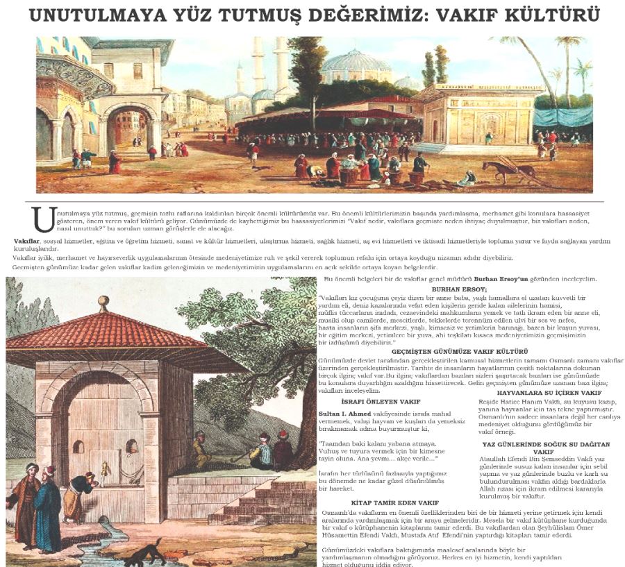 Hatice Zafer, yarışmaya geçmişten günümüze vakıf kültürü, İsrafı önleyen vakıf, Kitap tamir eden vakıf, Yetim çocukları ve öğrencileri pikniğe götüren ve Hüsn-İ Hat öğreten vakıf, Yaz günlerinde soğuk su dağıtan vakıf, gelin kızlara çeyiz veren vakıf, Hayvanlara su içiren vakıf mizanpajıyla yarışacak.
