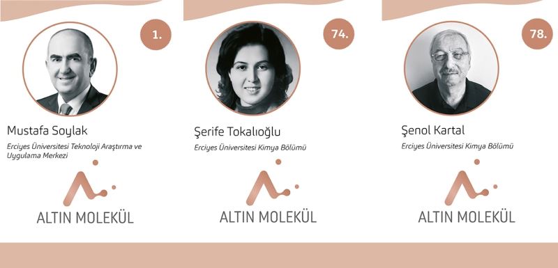 H-İndeksi değerleri, araştırma alanları, bilime ve insanlığa katkıları, aldıkları ödüller ve patentlerine de yer verildiği çalışmada H-indeksi değerine göre ERÜ Fen Fakültesi Kimya Bölümü Öğretim Üyeleri Prof. Dr. Mustafa Soylak 1. sırada, Prof. Dr. Şerife Tokalıoğlu 74. sırada ve Prof. Dr. Şenol Kartal ise 78. sırada yer aldı.