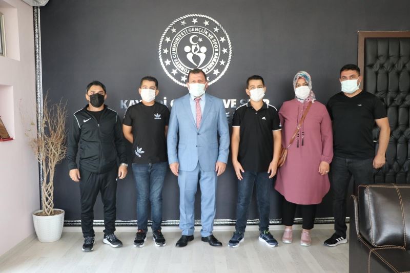 Antalya’da yapılan Serbest Güreş Türkiye Şampiyonasında iki bronz madalya alarak Kayseri’ye dönen ikiz kardeşler Durak ve Adnan Bilen, antrenörleri ve ailesi ile birlikte İl Müdürü Ali İhsan Kabakcı’yı makamında ziyaret etti.