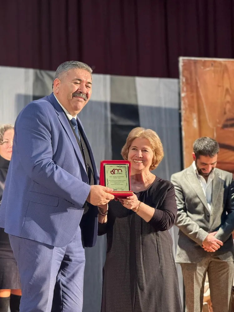 Oyun, Gültepe Kültür Merkezinde sahnelenerek salonu dolduran izleyicilerden büyük beğeni topladı. Hayatın içindeki vefa duygusunu, ihmal edilen ilişkileri ve mizahi çatışmaları sahneye taşıyan “Vefa Borcu”, izleyiciyle sıcak bir bağ kurdu. Oyuncuların sahnedeki uyumları ve samimi performansları oyunun atmosferine ayrı bir güç kattı.Gösterimin ardından düzenlenen plaket töreninde sahnede anlamlı anlar yaşandı. Genel Sanat Yönetmeni Sükriye Uluhan, oyunun metnini kaleme alan ve UKM’de daha önce sahnelenen “Gesibağları” oyununun da yazarı olan İbrahim Doğan Yiğit’i sahneye davet etti. Bu özel an sırasında, UKM’nin sahibi ve Kurucu Başkanı Abdullah Uluhan da sahnede yer alarak Doğan Yiğit’i tebrik etti ve yazarın emeğine dikkat çekti. Sükriye Uluhan, Doğan Yiğit’e özel hazırlanmış teşekkür plaketini takdim ederken, izleyiciler uzun alkışlarla bu duygusal anı karşıladı. Yazar, UKM’nin kendisine gösterdiği değerin kendisini onurlandırdığını ifade etti. Ayrıca, sanata ve sanatçıya verdiği destek ve değer nedeniyle Ali Ramazan Esen de plaketle onurlandırıldı. Plaketi, Gültepe Kültür Merkezi Müdürü, sahnede Abdullah Uluhan’dan, yani UKM Kurucu Başkanı’ndan aldı. Bu jest, sanat kurumları arasındaki iş birliğini ve kültürel destekleri bir kez daha gözler önüne serdi. Yönetmen koltuğunda Ahmet Hilmi Uluhan’ın bulunduğu oyunun finali seyirciden büyük alkış aldı. Temsil sonunda Sükriye Uluhan, “Her oyunda olduğu gibi bu temsilde de tek isteğimiz izleyicinin kalbine dokunabilmekti. Eğer bir tebessüme veya bir duyguya vesile olabildiysek ne mutlu bize.” sözleriyle düşüncelerini paylaştı. Genel Sanat Yönetmeni Sükriye Uluhan, konuşmasının sonunda UKM ekibinin üretmeye devam edeceğini vurgulayarak, “Sahne hiçbir zaman boş kalmayacak. Yaklaşık üç ay sonra yeni bir oyunla yeniden seyirci karşısında olabilmek için şimdiden gün sayıyoruz.” dedi. Haber: Mehmet Yılmaz