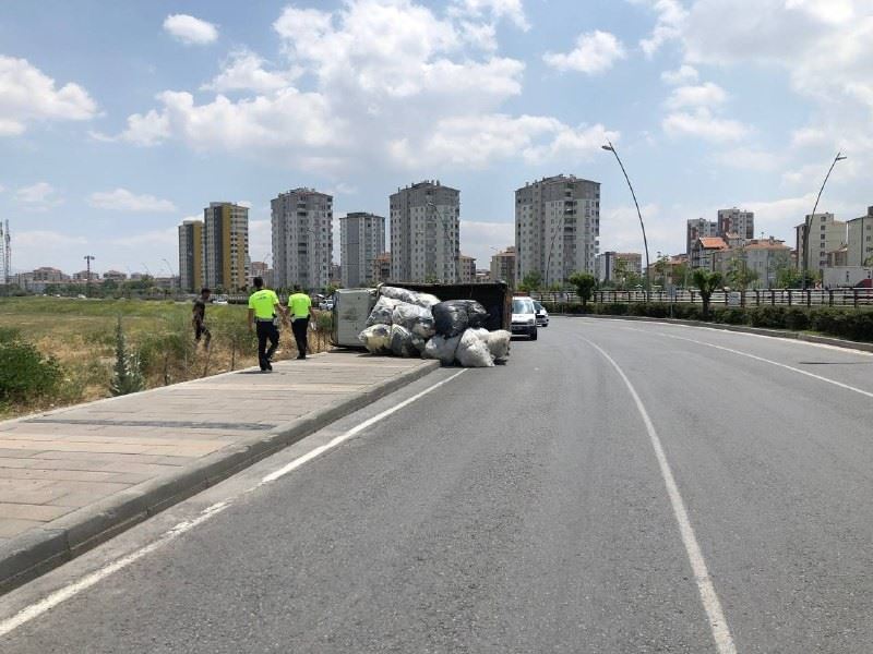 Kayseri’nin Kocasinan ilçesinde elyaf yüklü kamyonet virajı alamadığı için yol kenarına devrildi. Meydana gelen kazada 1 kişi yaralandı.