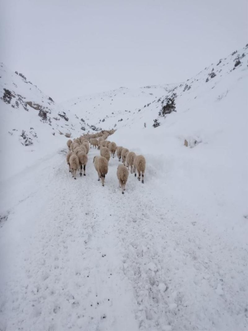 Kayseri’de kar yağışı ve tipi nedeniyle yaylada mahsur kalan 4 çoban ve 2 bine yakın koyun belediye ekiplerinin çalışmasıyla kurtarıldı.