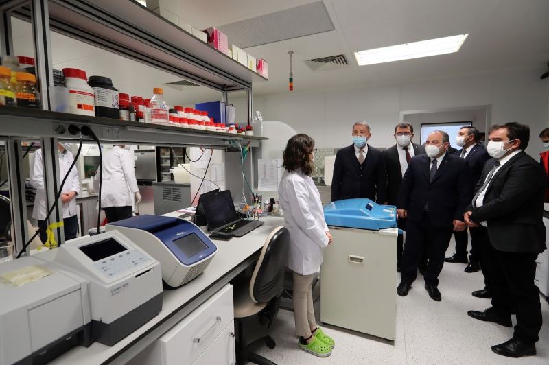 “Özellikle kan örneklerinde etkinlik parametrelerinde antikor oluşumu ve diğer parametrelere bakılarak inşallah nisan ayının sonunda etkinlik sonuçlarını Sağlık Bakanlığı ile Denetleme Kurulu ve Etik Kuruluna raporlayacağız. Sonrasında da inşallah Faz-3 aşamasına geçeriz diye ümit ediyoruz” diyen Rektör Çalış, Milli Savunma Bakanı Hulusi Akar ile Sanayi Teknoloji Bakanı Mustafa Varank’ın ziyaretinin araştırmacılar için büyük bir moral olduğunu söyledi. Bakan Akar ve Bakan Varank’a aşı çalışmaları ile ilgili olarak bilgiler aktardıklarını ifade eden Rektör Çalış, “Kendilerine İyi Klinik Araştırma Merkezimiz, faz çalışmalarının yapıldığı merkezimiz, burayı gezdirdik ve bilgiler verdik. Bu ziyaret hem bize hem de çalışmaları yürüten akademisyenlerimize moral oldu” ifadesini kullandı.
