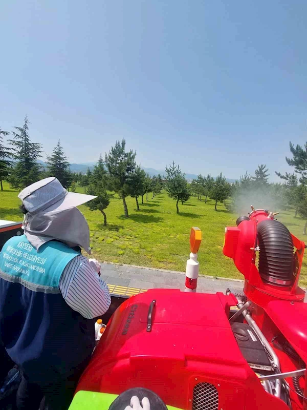 Kayseri Büyükşehir Belediyesi; park, bahçe ve mesire alanı gibi sorumluluk sahasında bulunan tüm yeşil alanlarda hastalık ve zararlılara karşı ilaçlama çalışmalarını titizlikle yürütüyor.