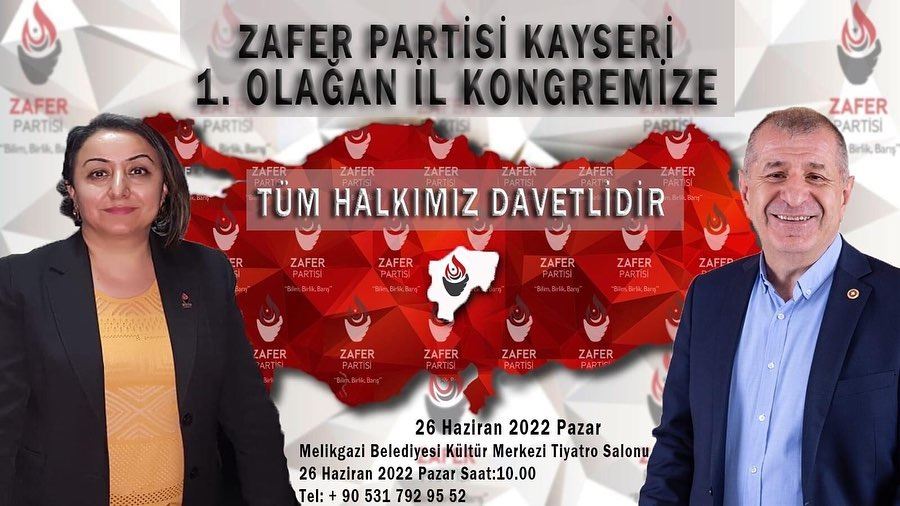 Zafer Partisi Kayseri İl Başkanlığı 1.Olağan İl Kongresi 26 Nisan Pazar günü yapacak. Melikgazi Belediyesi Kültür Merkezinde gerçekleştirilecek olan kongre saat 10.00’da başlayacak.